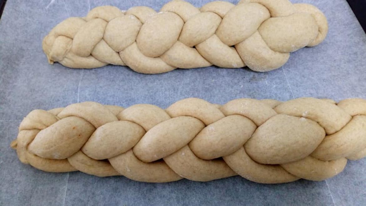 מניחים את החלות הקלועות על מגש מרופד בנייר אפייה.