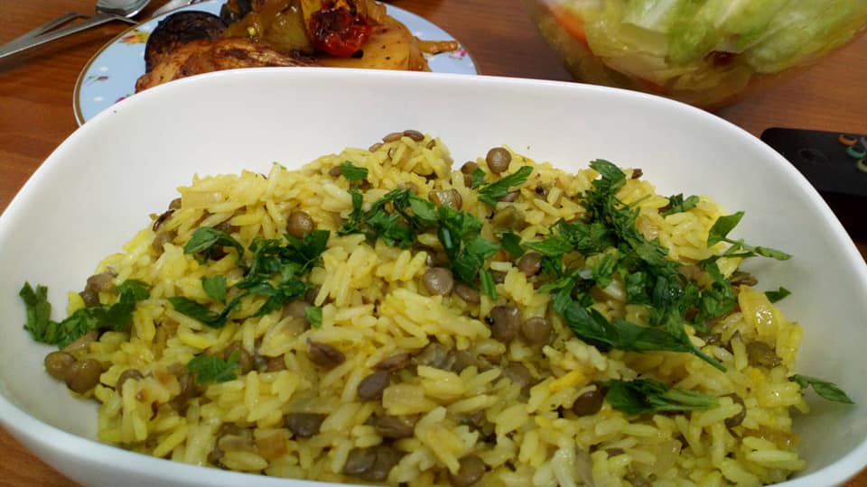מג'דרה מאכל אורז עשיר ומזין המכיל עדשים בצל ואורז, מוגש כמצע או כתוספת למנה בשרית .