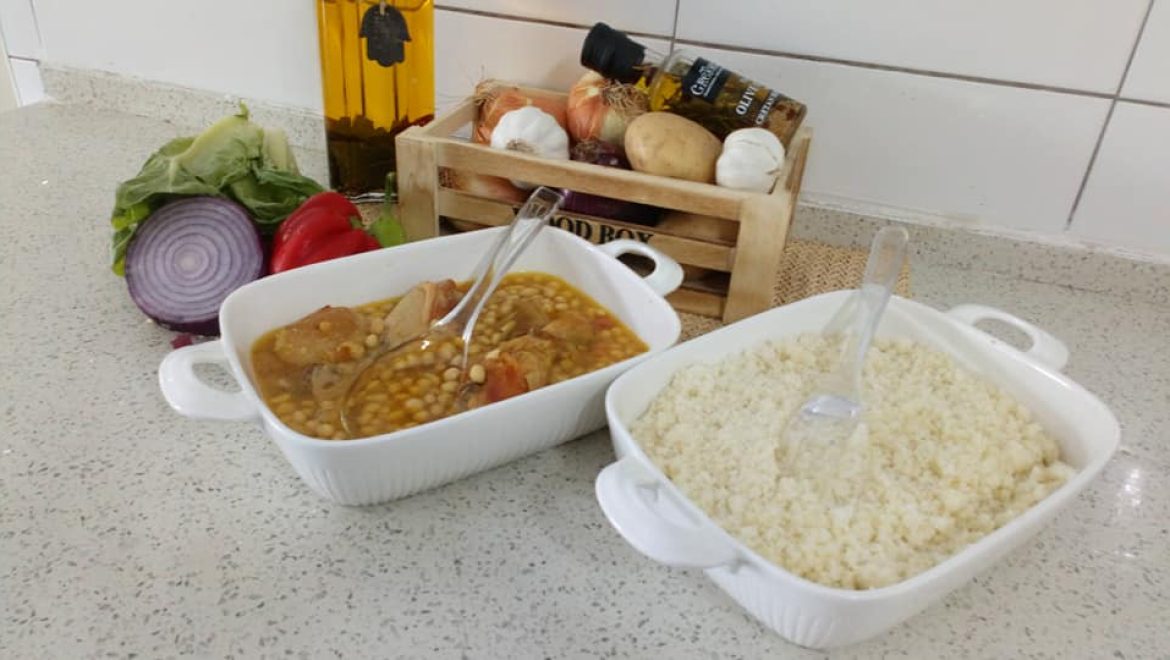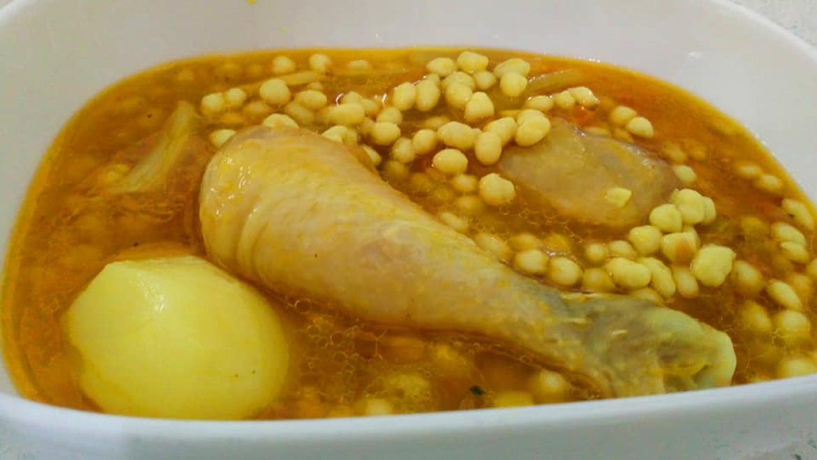 צלחת ניקיטוש חמין מרק נוסח טוניס על מצע של קוסקוס, חמין עדין קליל וטעים מאוד. קל להכנה ומרכיבים פשוטים מאד.