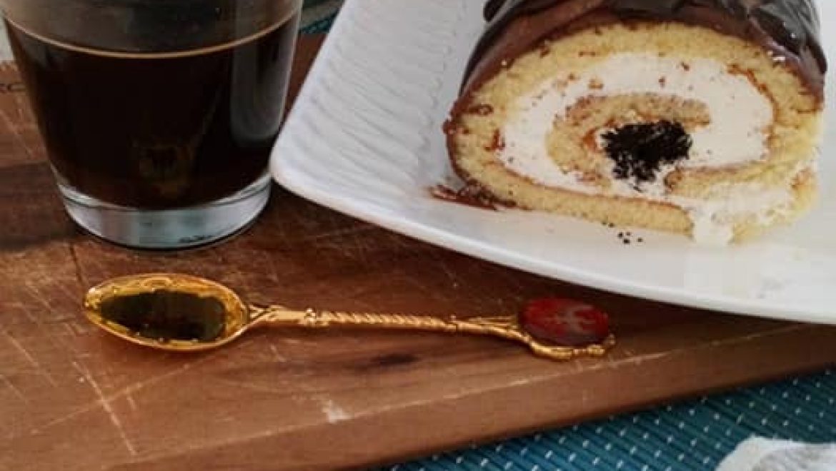 לאחר שהעוגה נאפתה מוציאים אותה מהתנור וממתינים כמה דקות ומגלגלים פנימה לאורך עם הנייר ומכסים במגבת כחצי שעה ומכינים את הקצפת.
