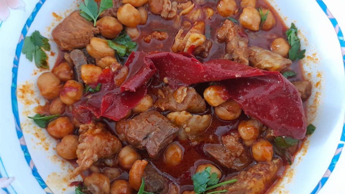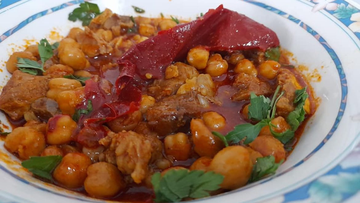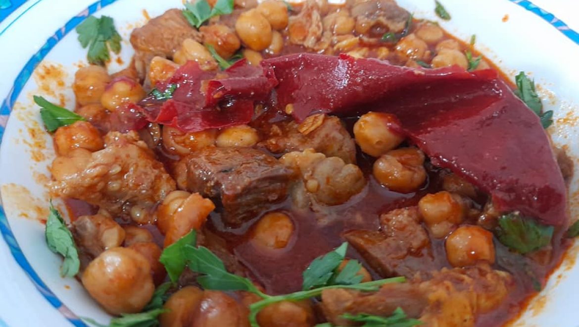 תבשיל פיקנטי וטעים גרגרי חומוס ובשר ראש ברוטב חריף, לערב שבת וחג.